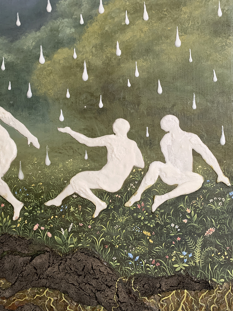 oil on canvas, sugar, soil / 190 x 140 cm