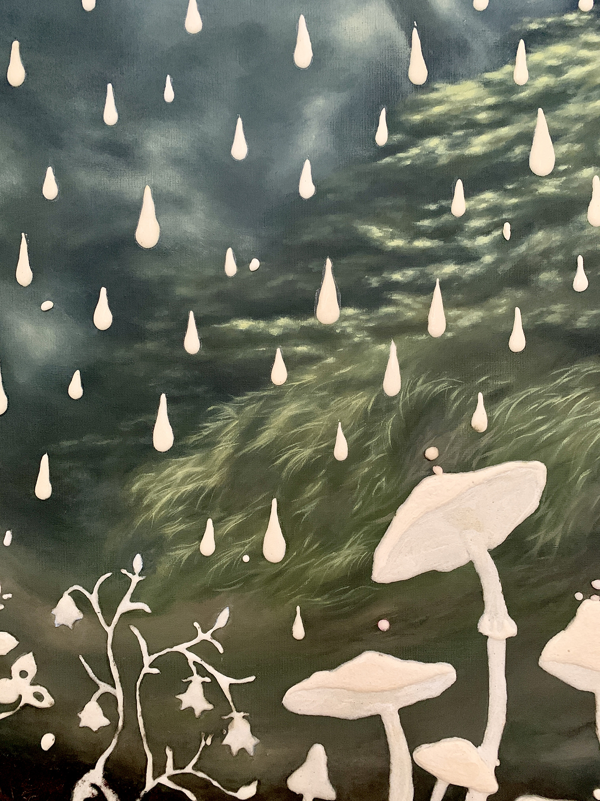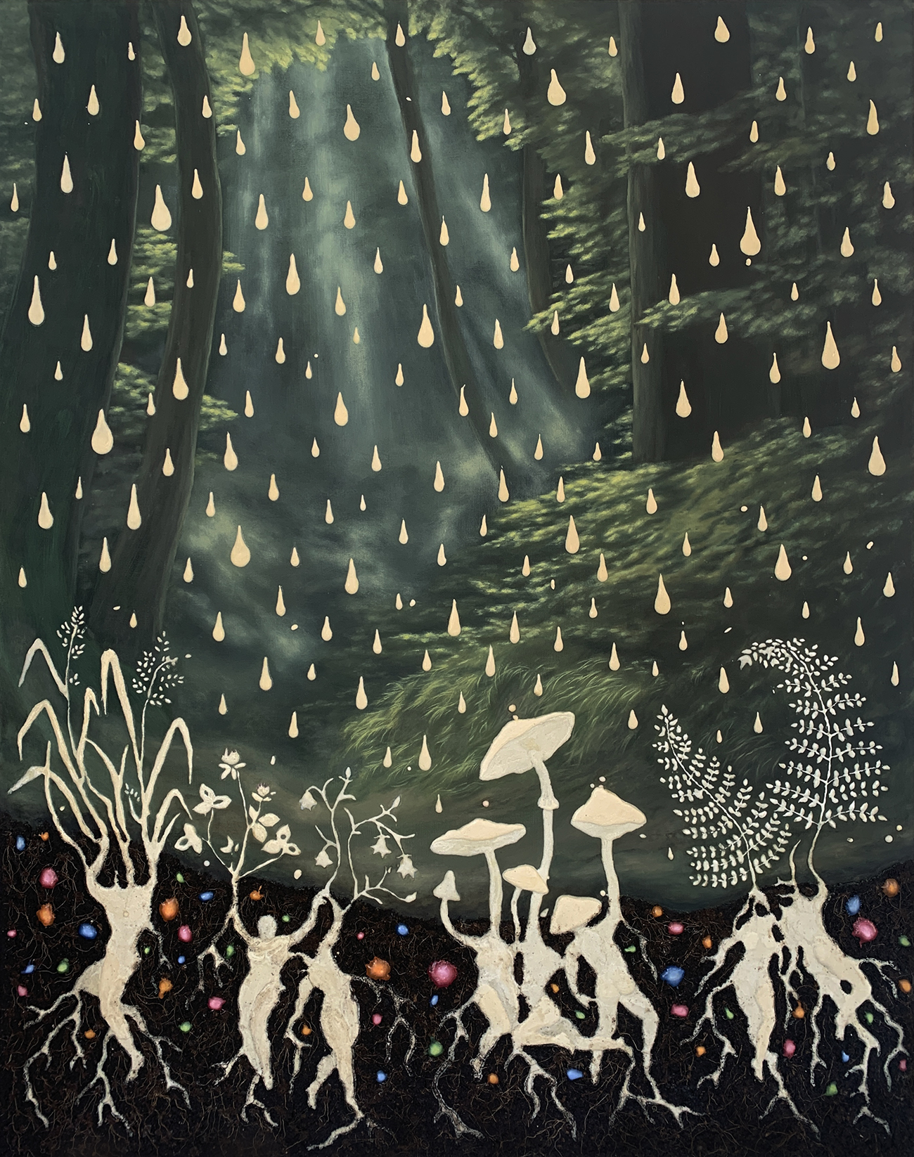 oil on canvas, sugar, soil, resin / 190 x 150 cm
